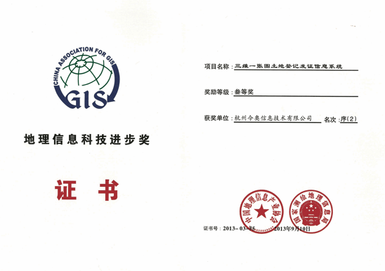 地信三維一張圖土地登記發(fā)證三等獎-公司